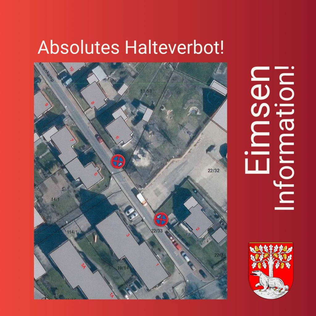 Im Bereich ab Höhe Gehrenkamp 2 bis einschließlich des Spielplatzes wird ein absolutes Halteverbot eingerichtet.