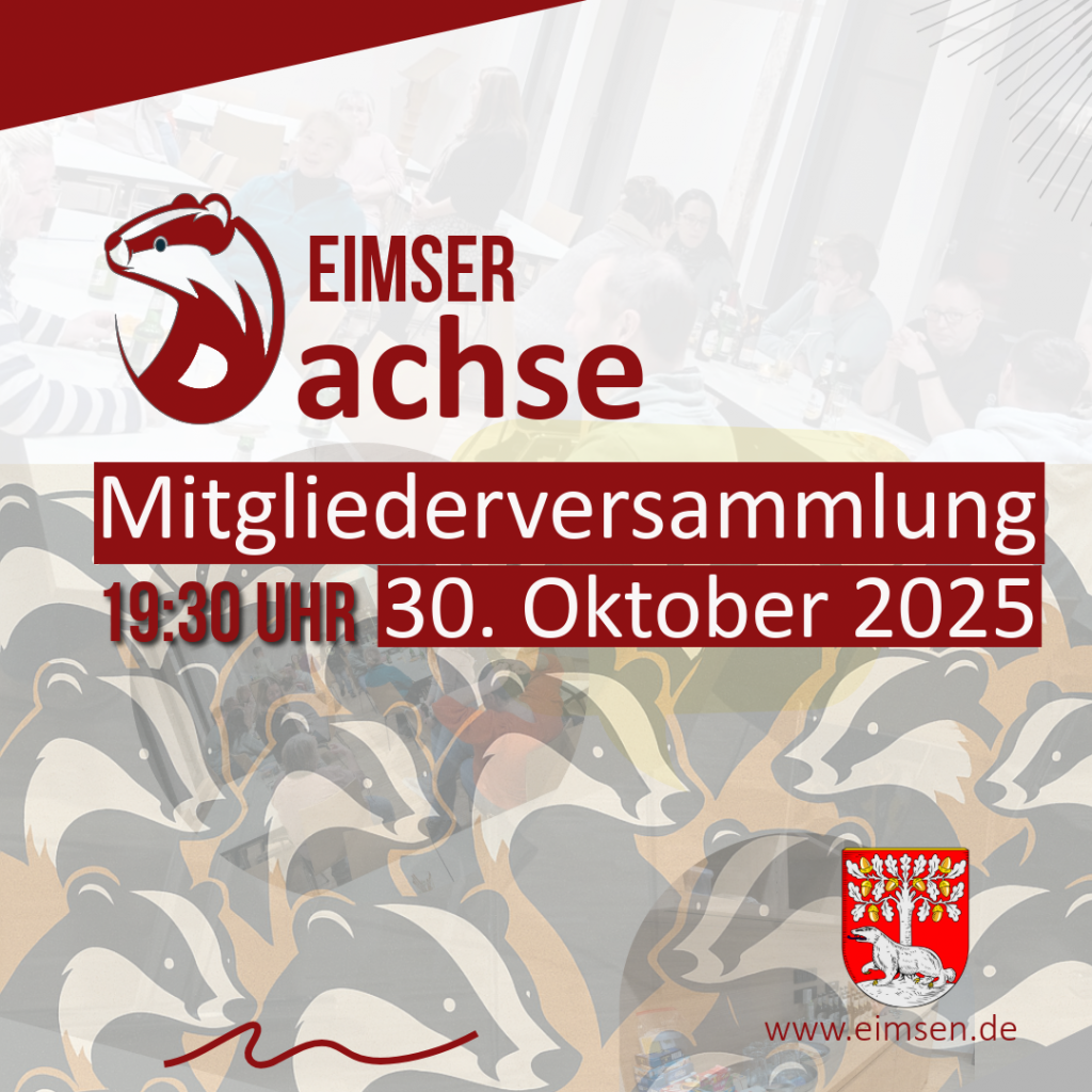 Die Eimser Dachse e.V. laden herzlich zur diesjährigen Mitgliederversammlung am 30. Oktober um 19:30 Uhr