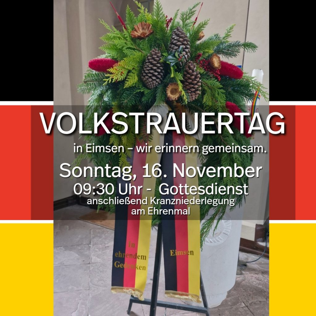 Am Sonntag, dem 16. November, gedenken wir in Eimsen der Opfer von Krieg und Gewalt.Im